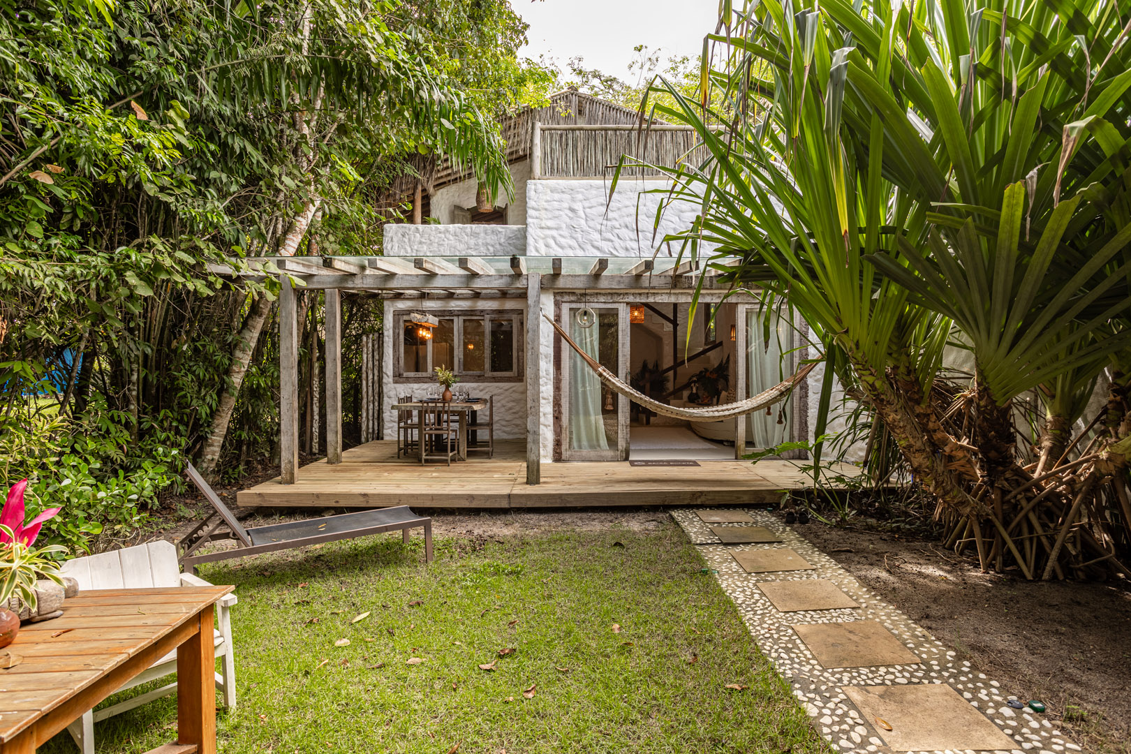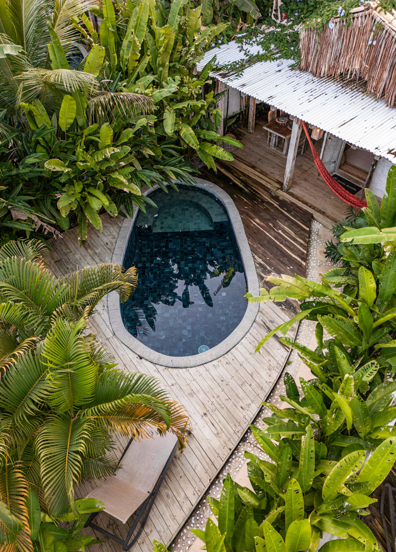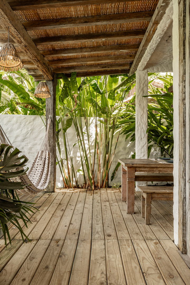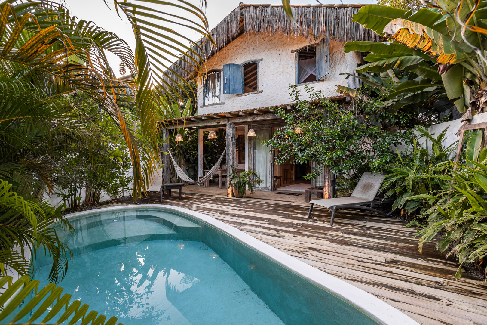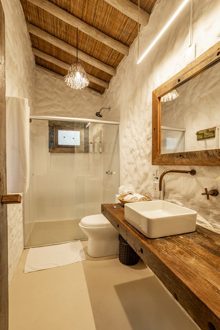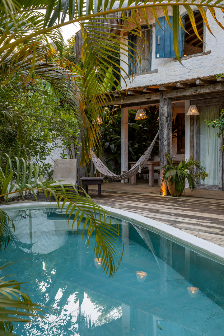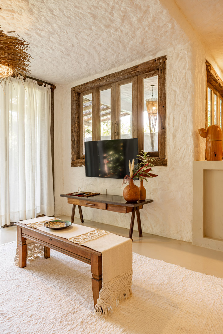 Com 100m², 2 suítes king-size amplas e piscina privativa cercada por jardim tropical. Arquitetura baiana que valoriza luminosidade e simplicidade elegante. Combina privacidade de casa com serviços completos de hotel boutique em Trancoso.