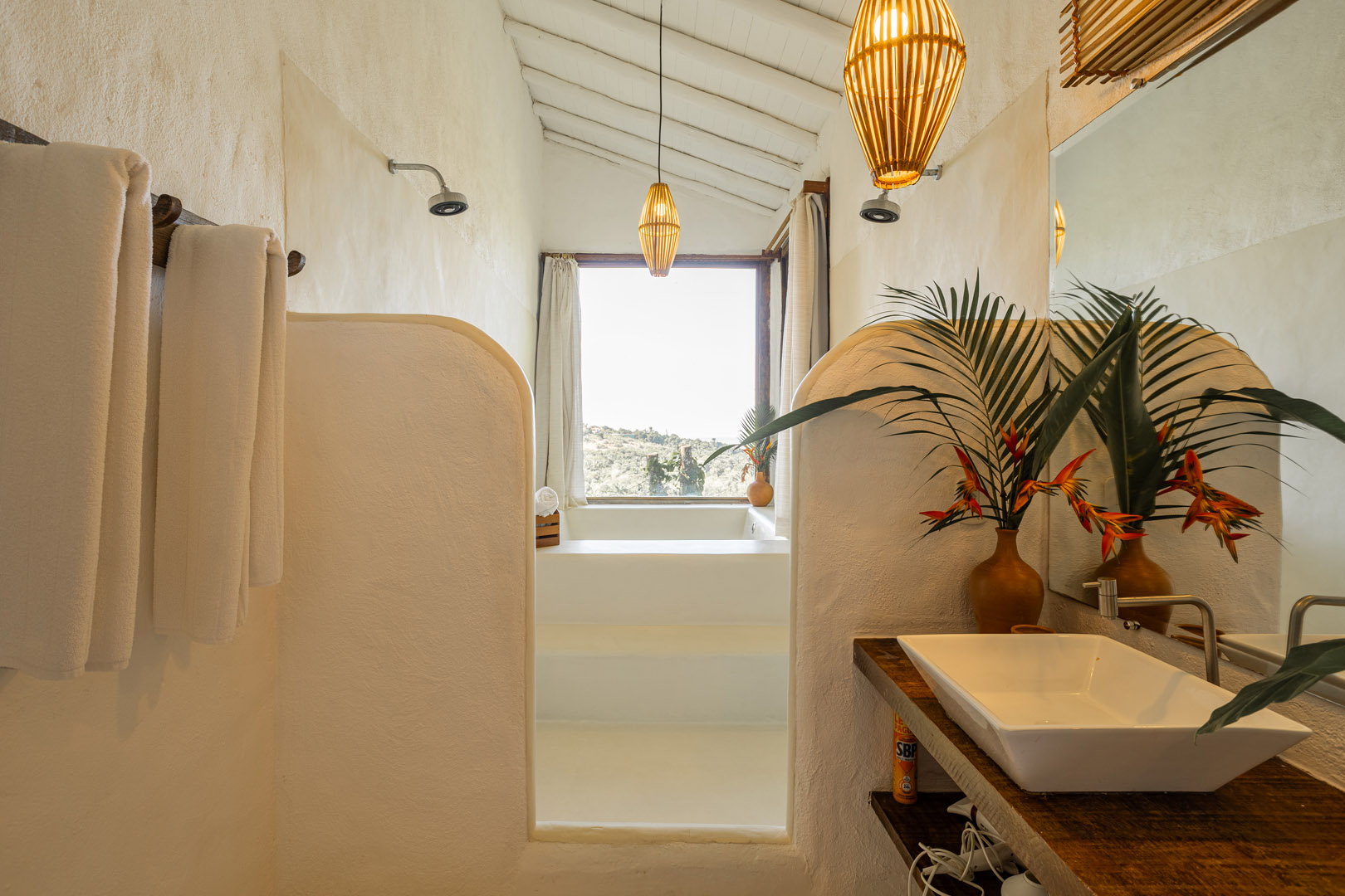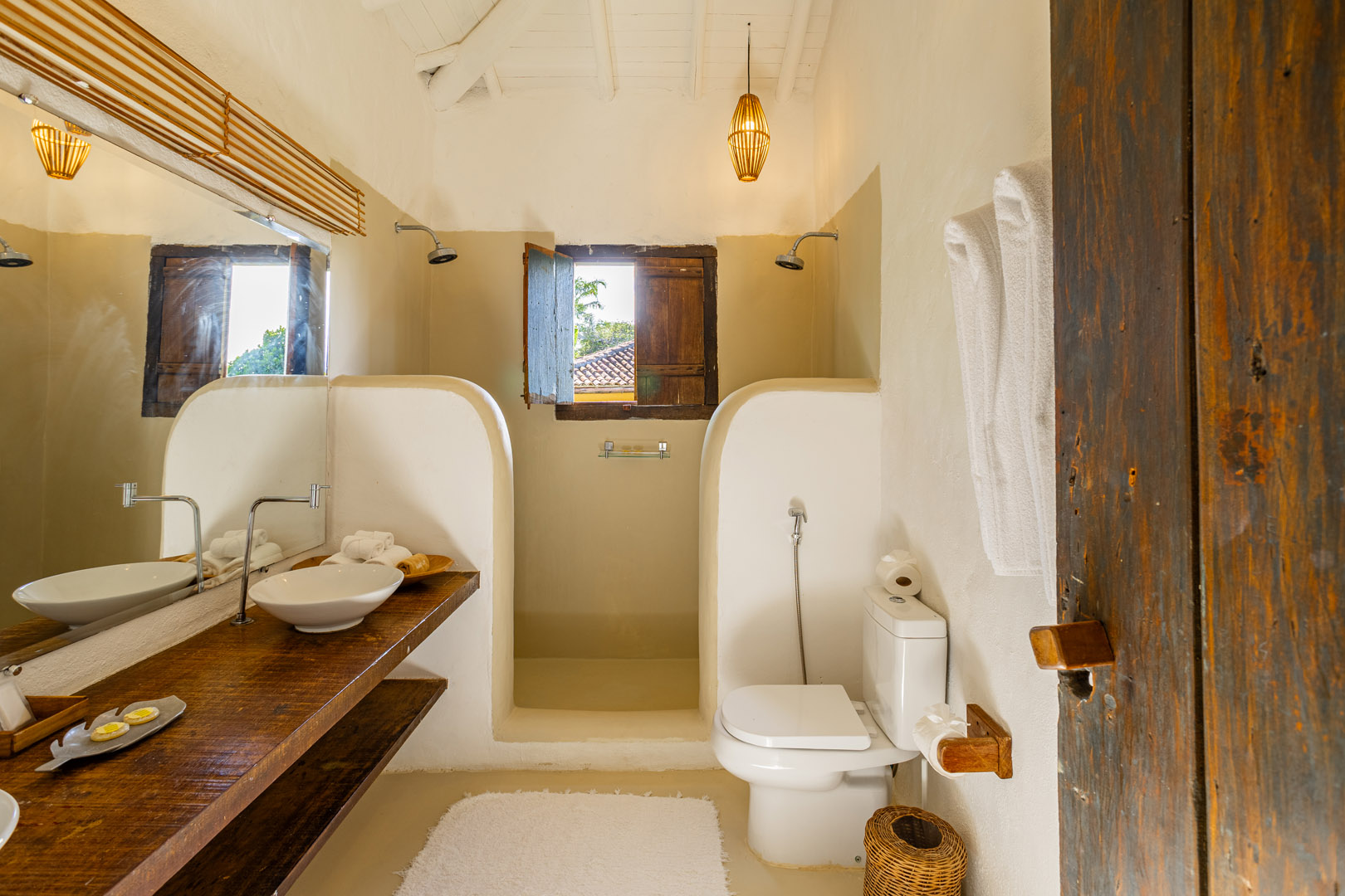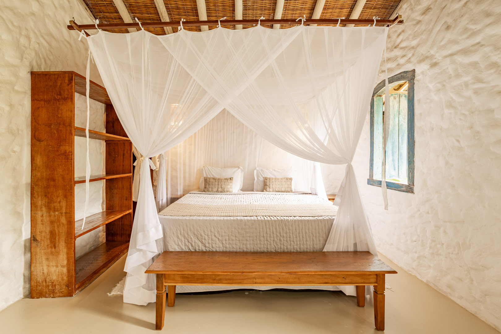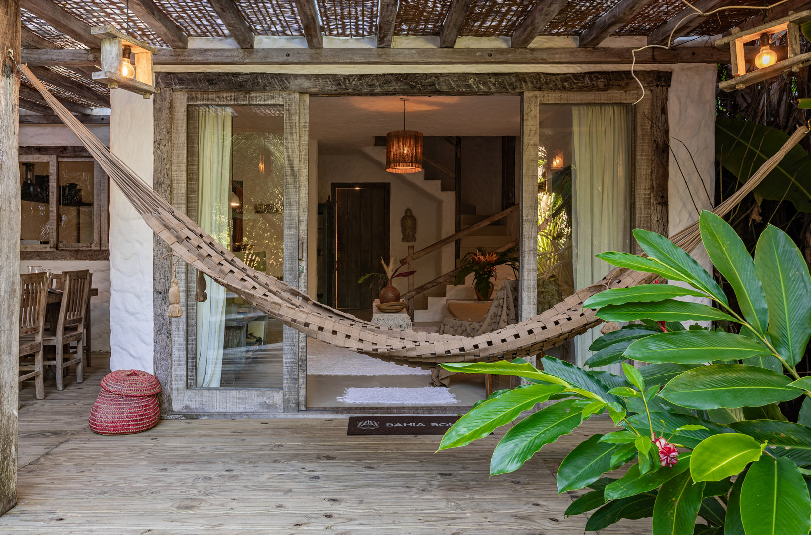 Com 100m² com 3 suítes king-size e mosquiteiros dossel, piscina privativa cercada por jardim tropical. Arquitetura baiana com espaços amplos e integrados à natureza. Serviços completos de hotel boutique para até 6 pessoas em Trancoso.