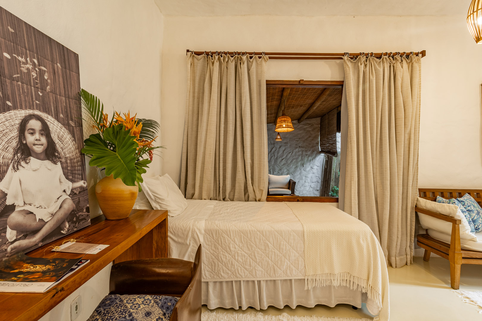 Arquitetura baiana, enxovais de linho, ar-condicionado e o conforto de quem entende que luxo está nos detalhes. A apenas 100 metros do centro histórico, mas imerso em um jardim tropical que parece te afastar do mundo. É o equilíbrio perfeito entre estar perto de tudo e sentir que o tempo parou.
