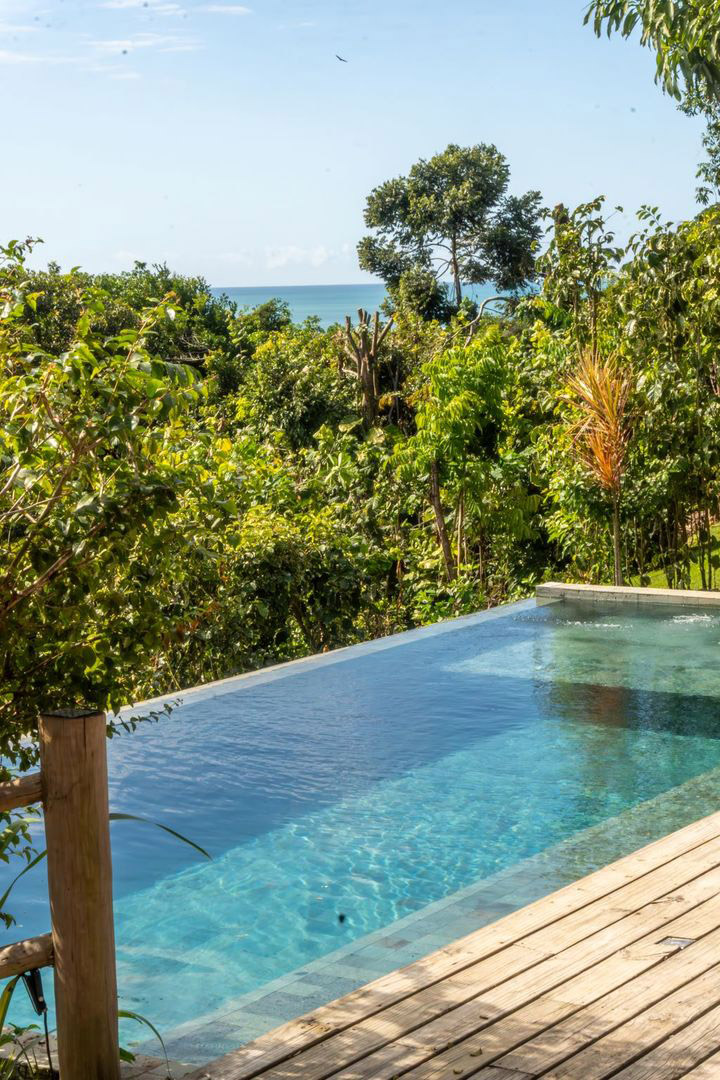 Até 4 pessoas (135m²). Borda infinita e vista mar.